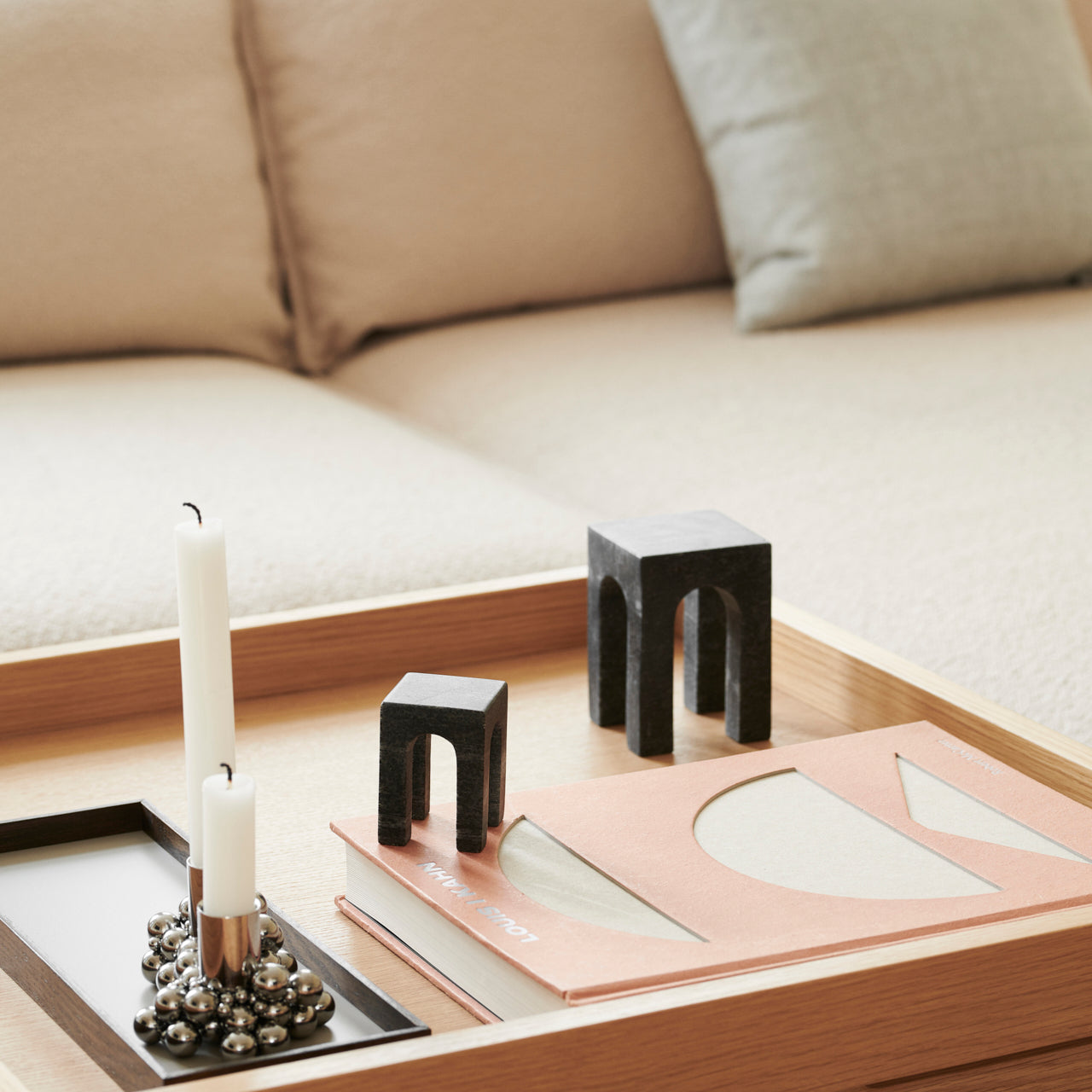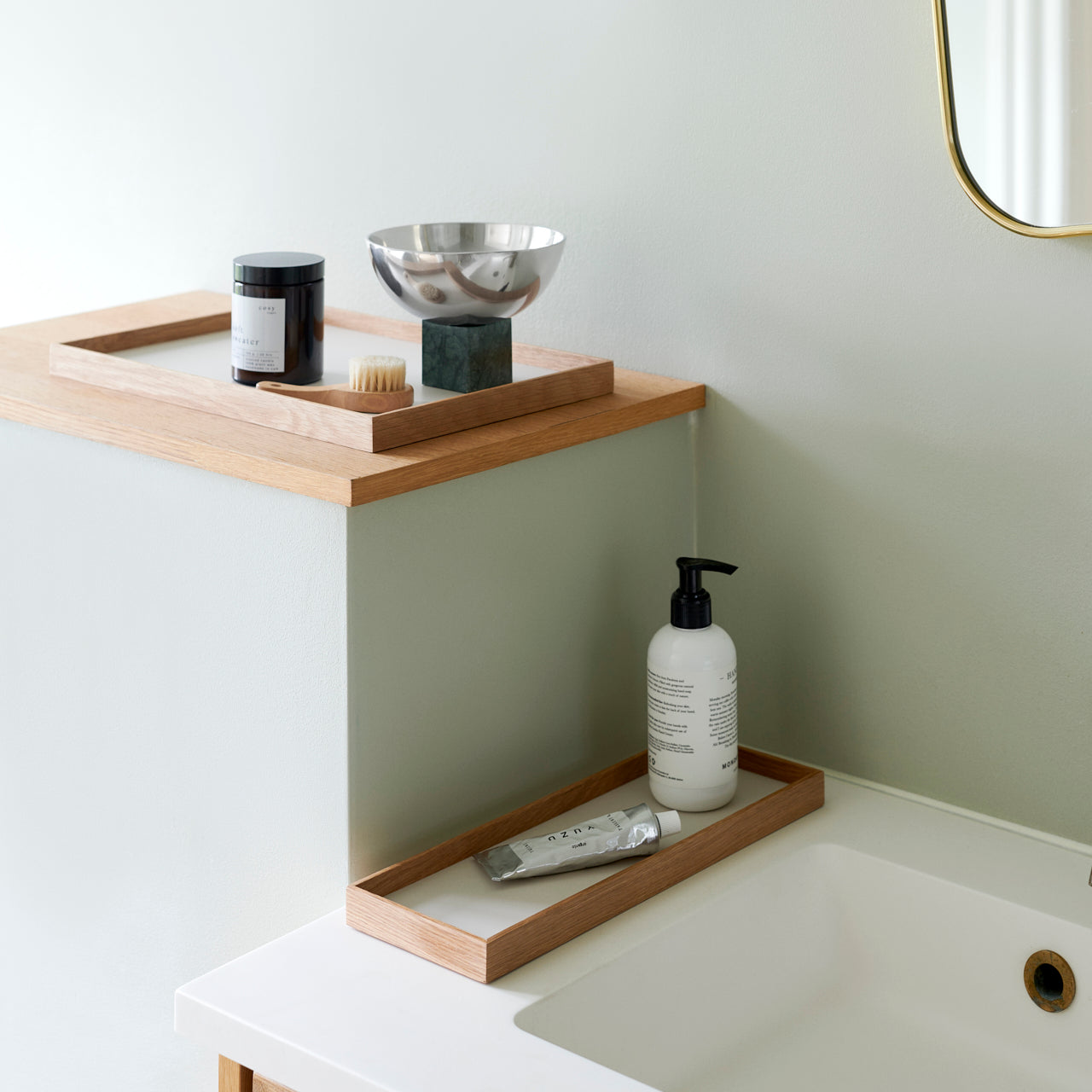 Frame has been relaunched with three new colors, including a beautiful grey, a seductive green, and an elegant beige. To add even more variety, the collection also includes the option to choose between an exclusive oak edge and one in smoked oak. The three different sizes make it possible to choose the ideal Frame for every need, whether for displaying objects or as a practical serving tray.