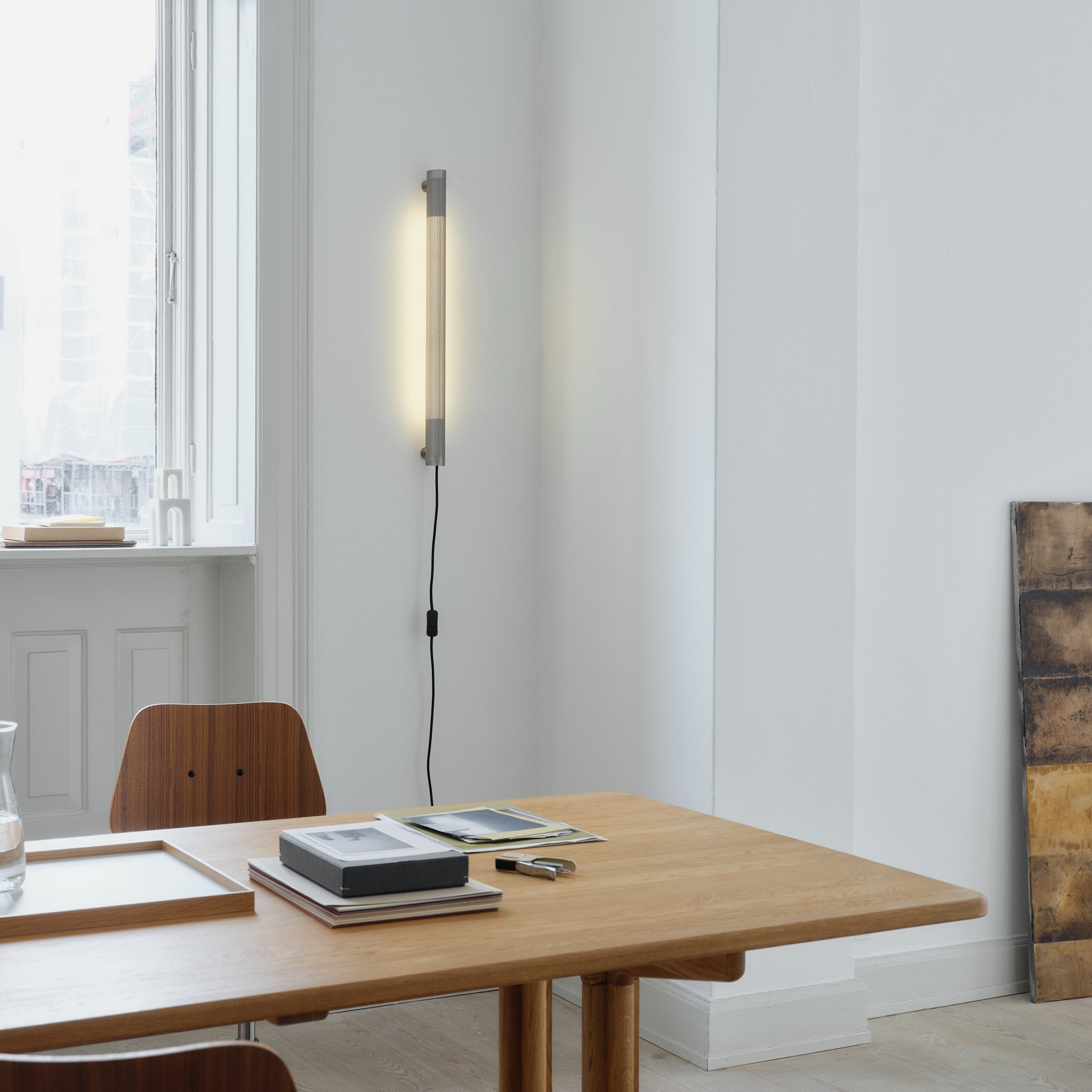 Radent Wall Lamp is based on a standard LED light and is a slim radiant linear wall lamp. The Radent Wall Lamp is available in two sizes with a black,