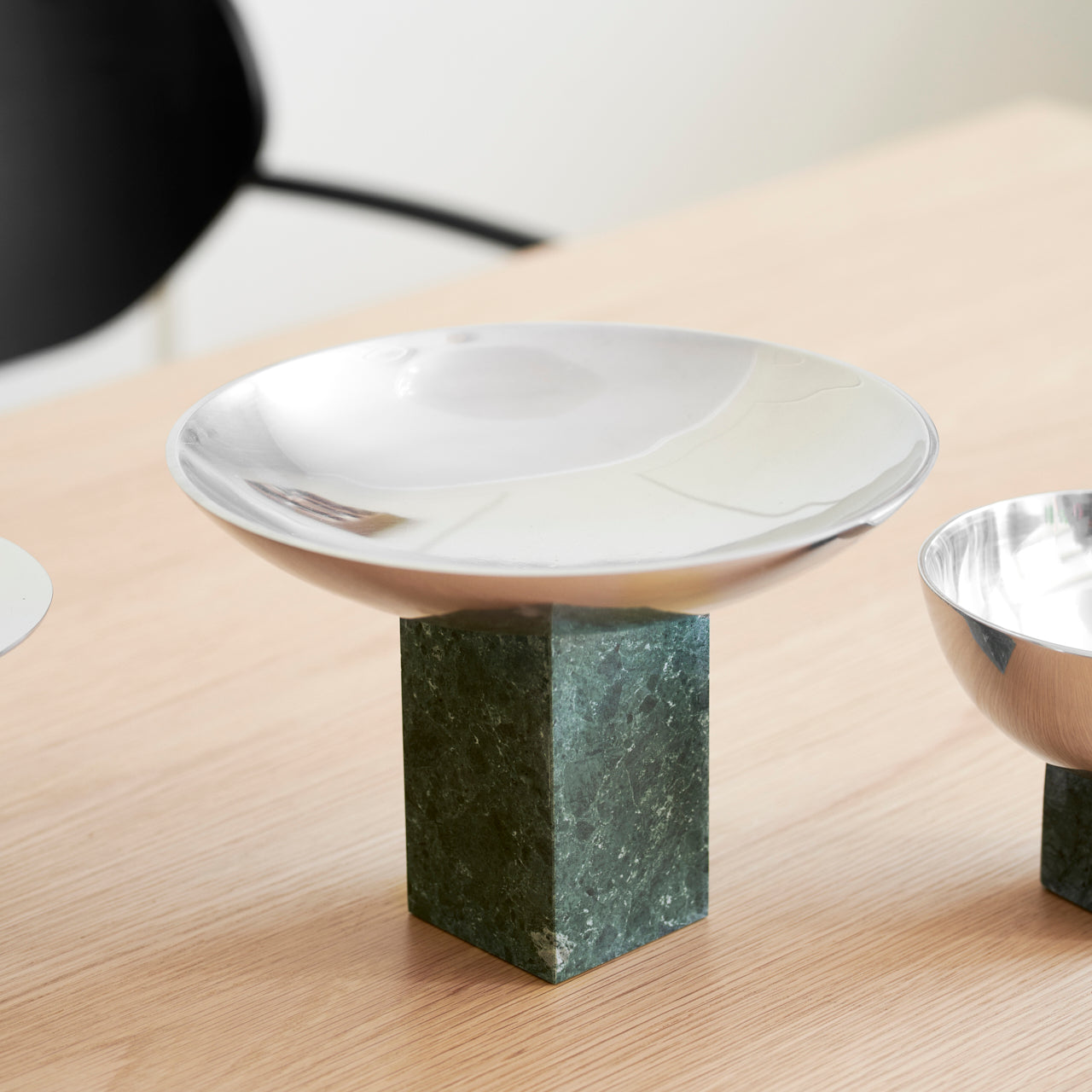 While the serving tray and bowls are hand polished to a shine, the raw sand casting method lends a beautiful contrast to the dark marble of the plinth. The Sapoto series consists of objects that spark curiosity. Invite us to touch. To pick them up. To share.