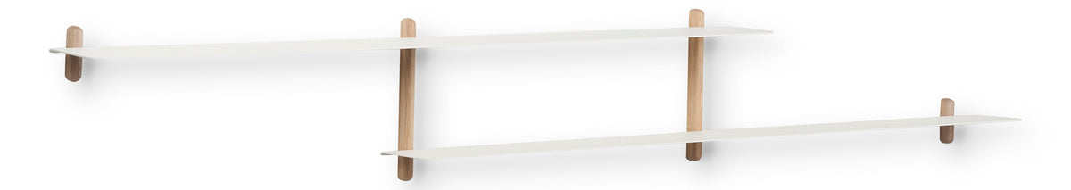 Nivo is a minimalistic wall shelf designed by Böttcher & Kayser for Gejst. With no unnecessary details and only clean lines Nivo hangs lightly and elegantly on the wall. Every component has been carefully thought out both in terms of design, form and function. There are no visible screws and the shelves are smoothly plugged in to the wooden poles, that have slits made exactly to fit.