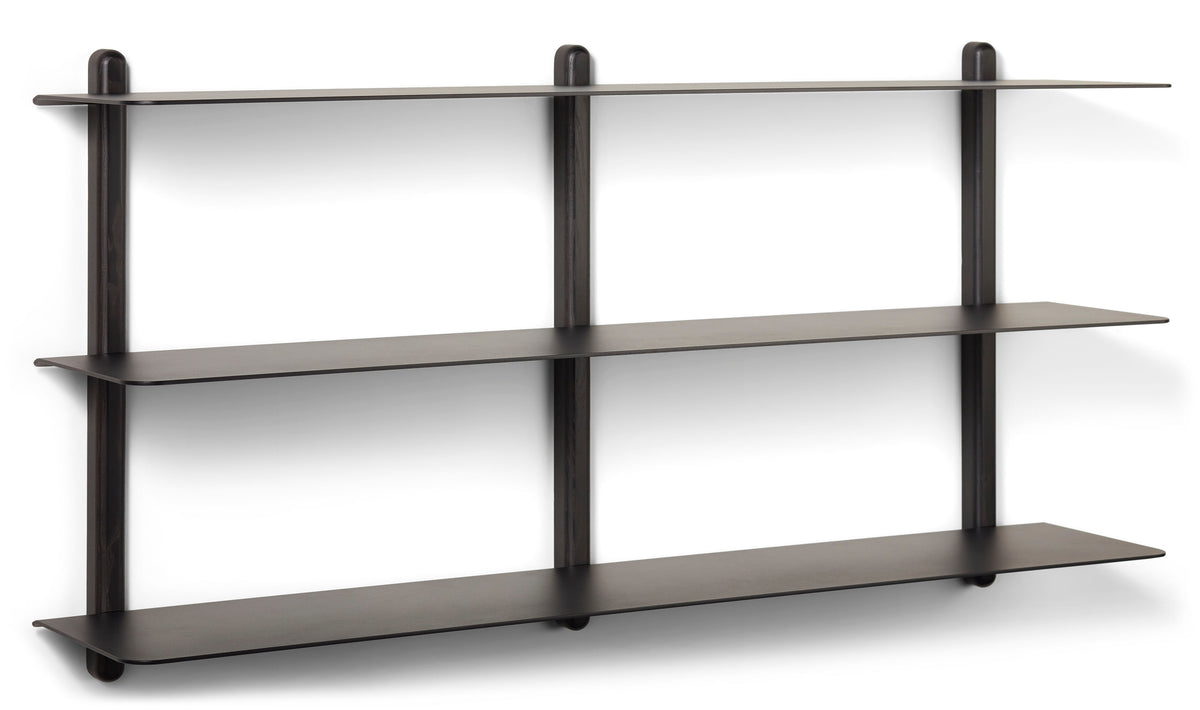 Nivo shelf Large has the perfect size to exhibit the bigger things. The shelf is beautiful in every room of the home. Nivo shelf large is available in 6 different variants in light oak/ white and black ash/ black.