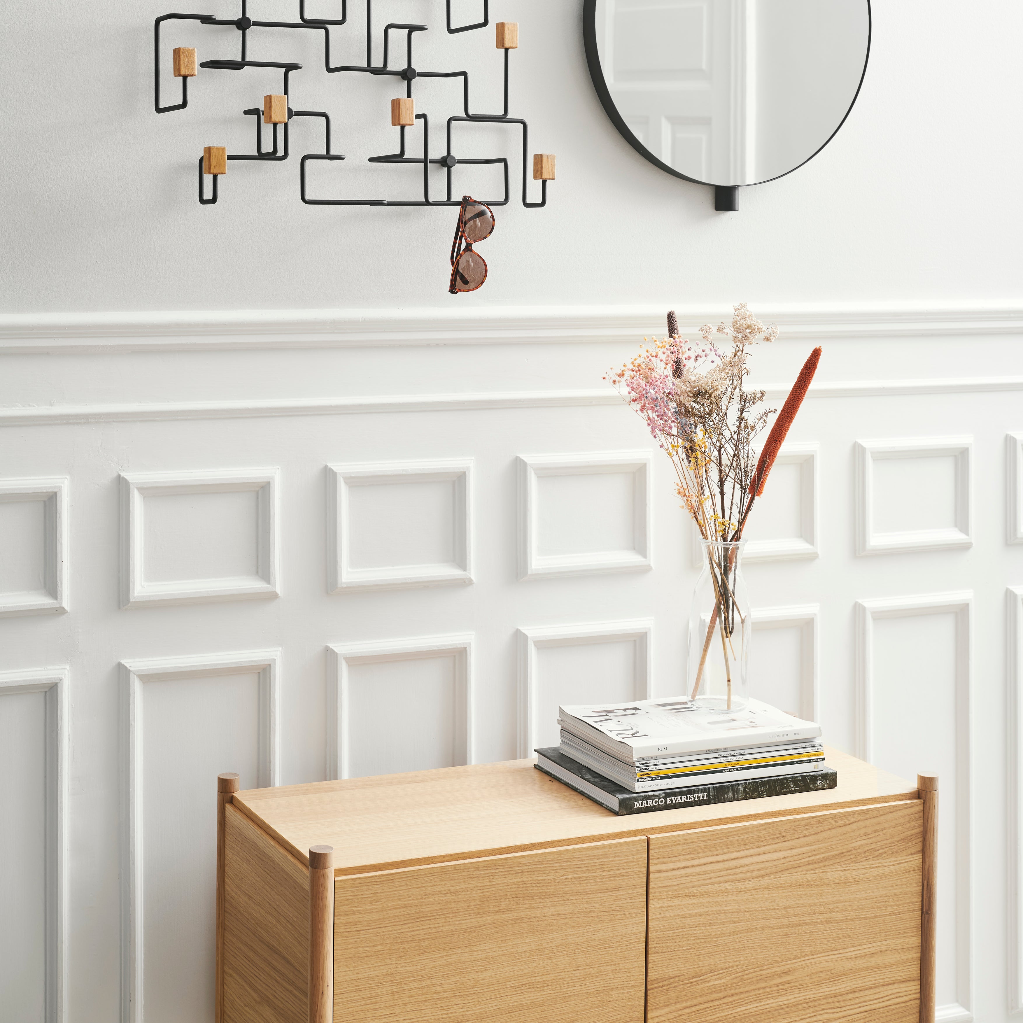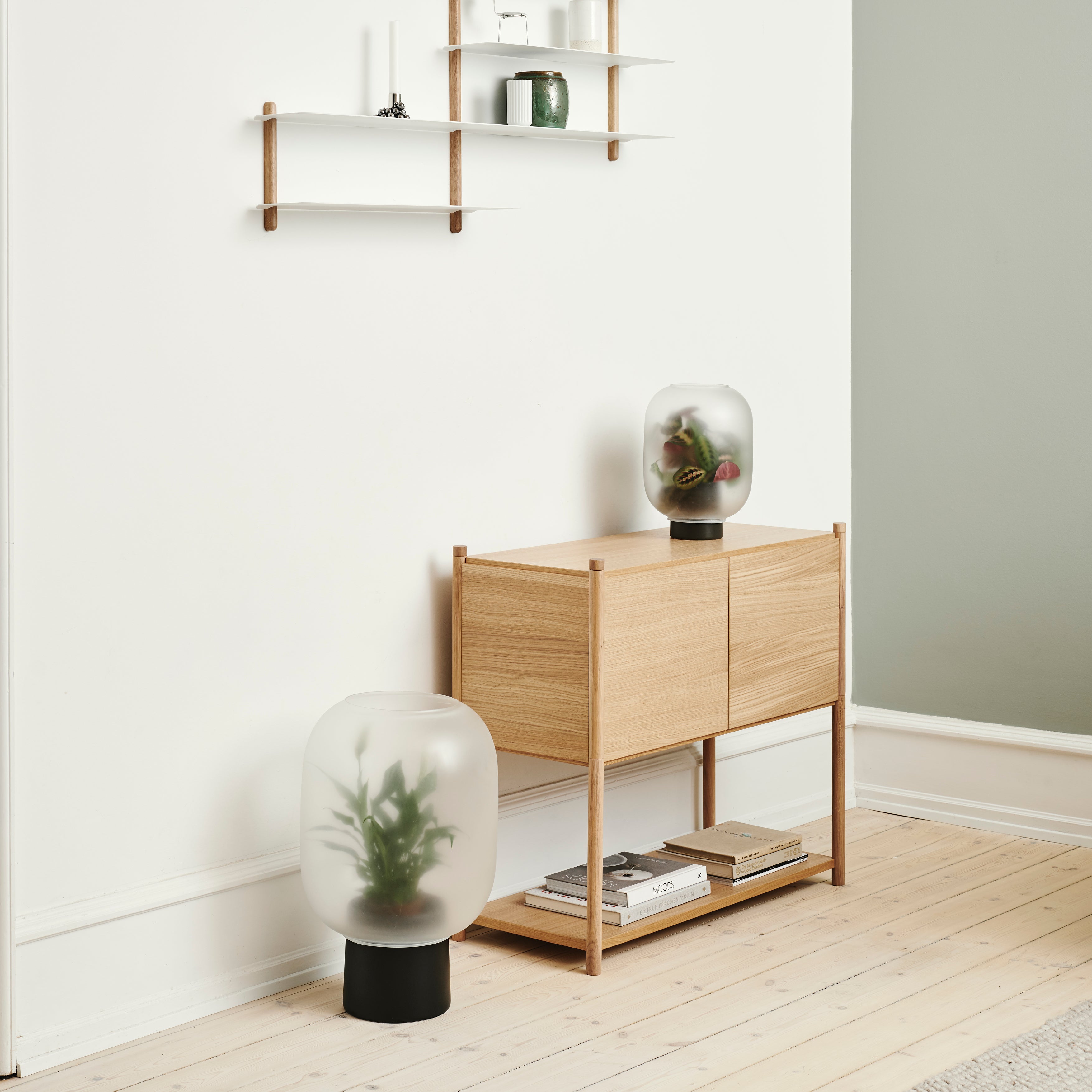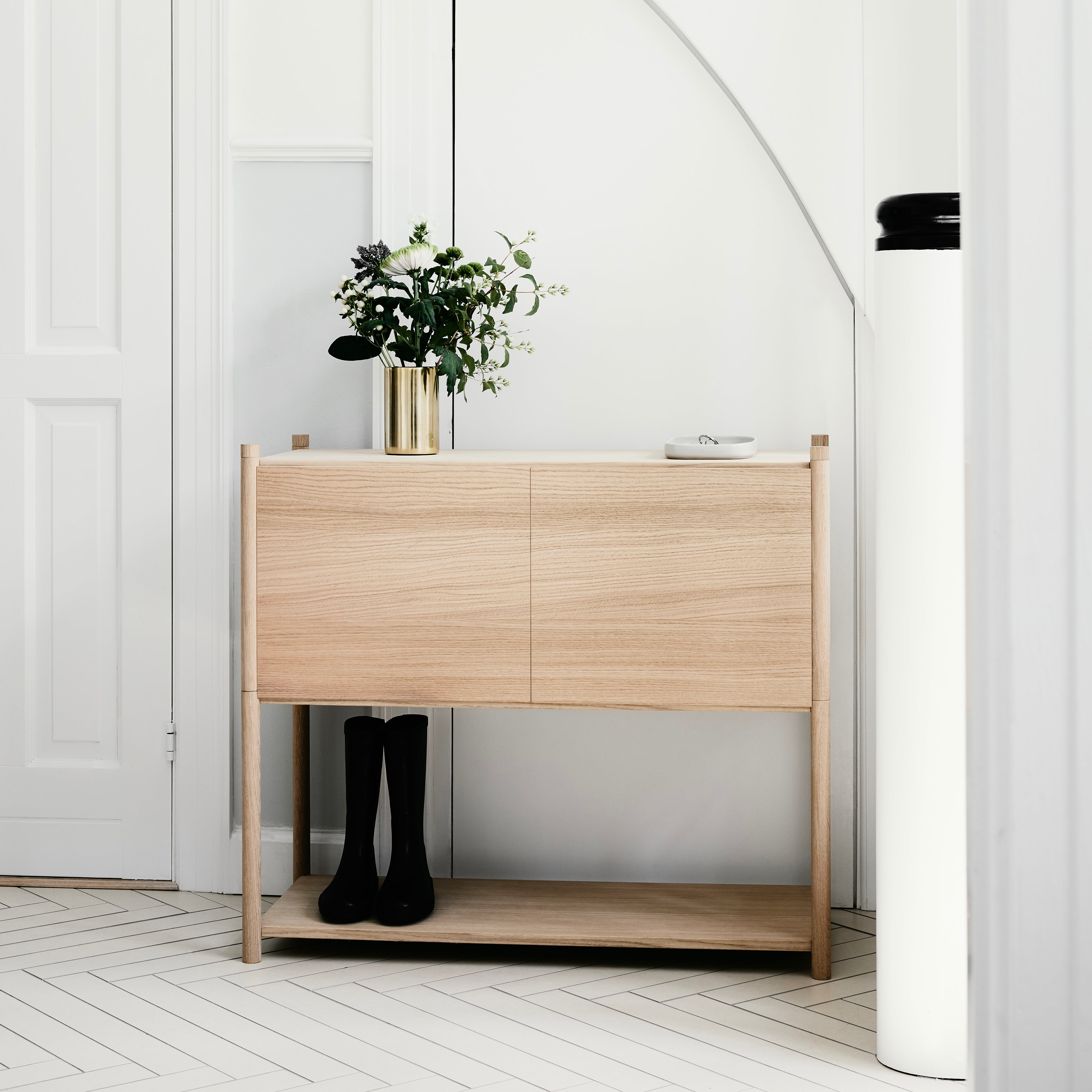 Sceene is a modular shelving system, designed by Michael Rem for Gejst. Module by module the shelving system can be build up high, extended to the sides and be customized with side panels, doors or back panels made in oak or black oak. The idea behind Sceene is to create a frame to put the stories we form during our life on display. Our stories are captured in artifacts and objects full of sentimental value and with Sceene you can tell your stories exactly how you want.