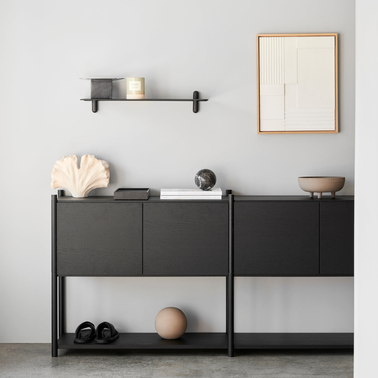 Sceene is a modular shelving system, designed by Michael Rem for Gejst. Module by module the shelving system can be build up high, extended to the sides and be customized with side panels, doors or back panels made in oak or black oak. The idea behind Sceene is to create a frame to put the stories we form during our life on display. Our stories are captured in artifacts and objects full of sentimental value and with Sceene you can tell your stories exactly how you want.