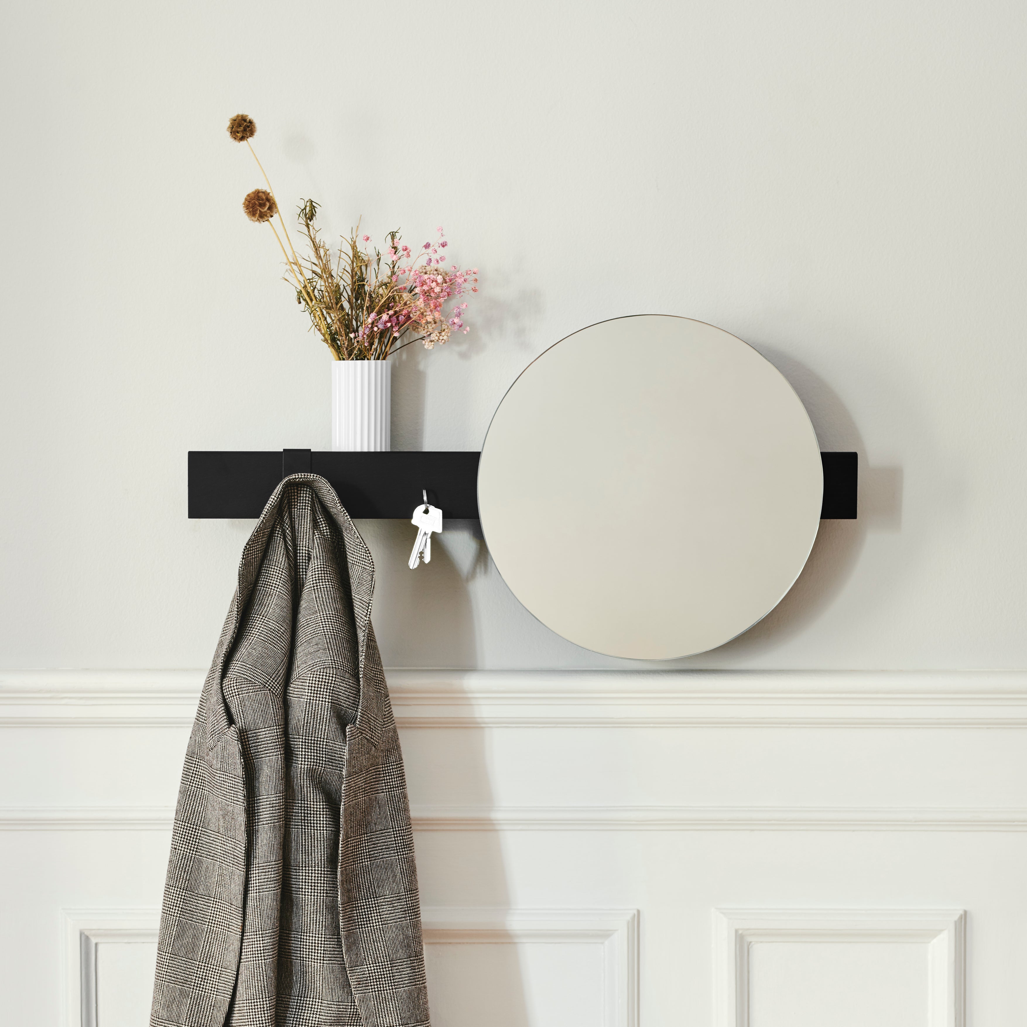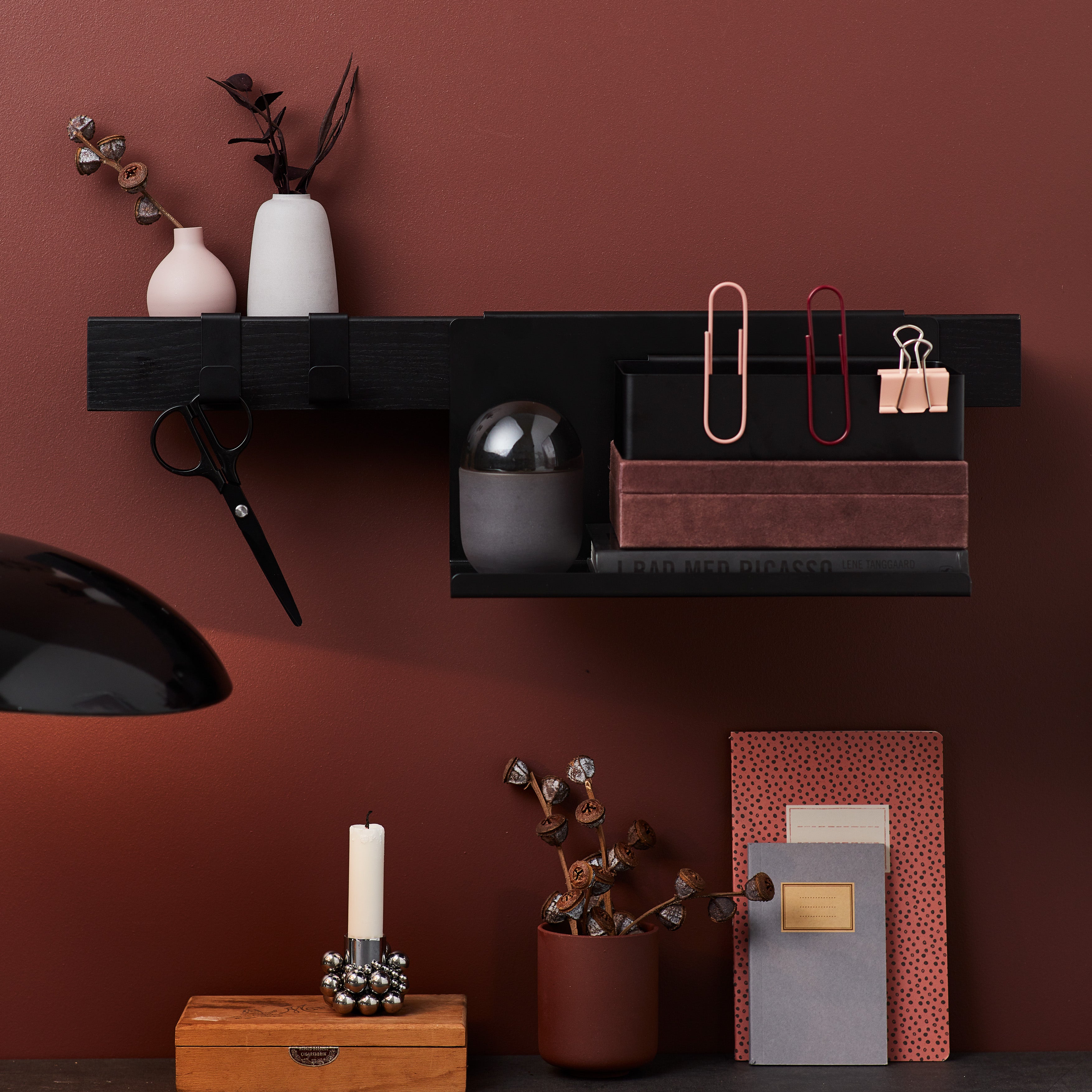 Flex is a multifunctional magnetic storage shelf, in just the right size and with all the elements you need for keeping your bits and pieces tidy in all sorts of settings. Stylishly functional in the best tradition of Nordic design, Flex is made with a focus on high quality materials and combines a magnetic strip, shelf, hooks, mirror, side table, boxes and more. Effortlessly interchangeable, you choose the set up that works for you. Flex uses a powerful magnet that allows the different elements to be placed just where you want them without wobbling.