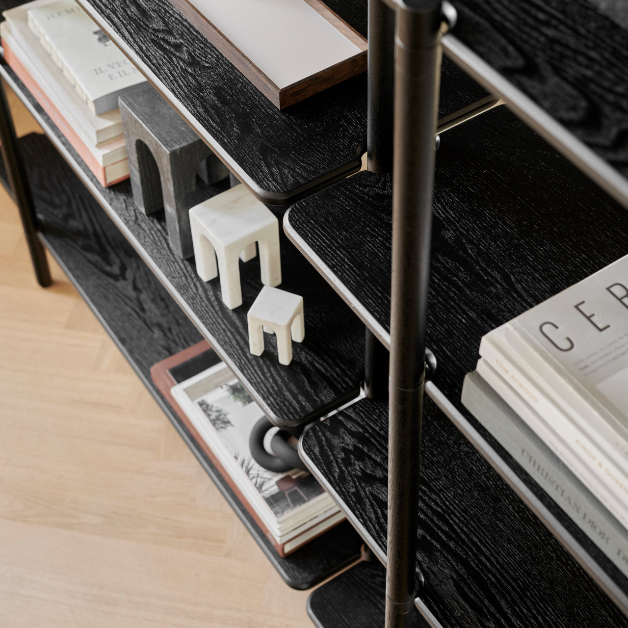 The creation of Invi involved a seamless collaboration between Yonoh Creative Studio and Gejst, marrying visionary design and commitment to quality. Starting with the concept of an asymmetric module, Yonoh Creative Studio developed the iconic zig-zag structure that defines Invi's core, which means that the modules can easily be joined together and extended. At the same time, the zig-zag structure acts as a natural end to each shelf, which can function, among other things, as an integrated bookend.