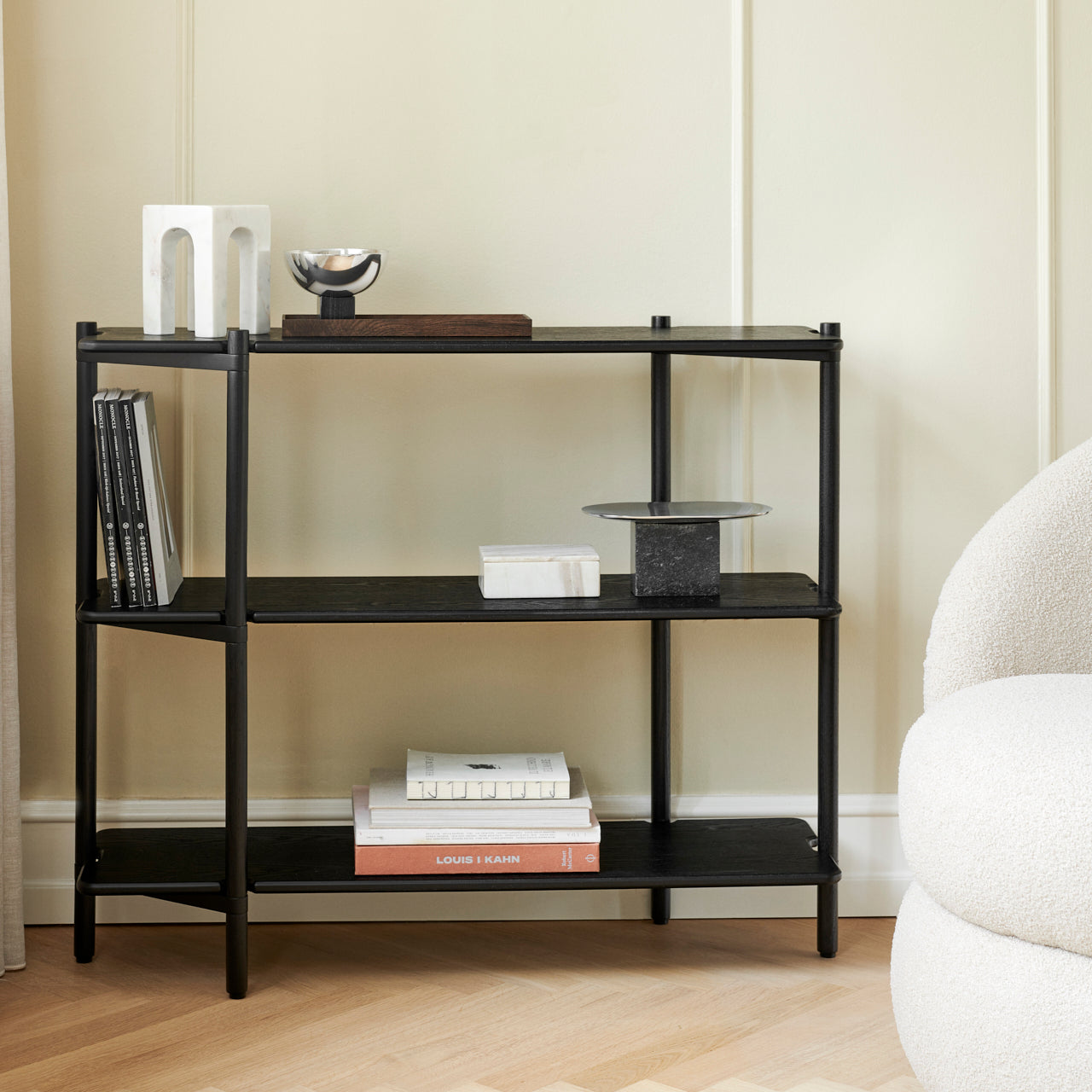 With its modular design, Invi adapts effortlessly to various environments, offering endless possibilities for customization. Invi consists of two modules, where Module 1 always forms the base on the floor, while Module 2 is used to build in height. Whether as a bookcase in the living room, a sideboard in an entrance hall, or a dividing element in open spaces, Invi enhances the aesthetic appeal of any setting. Its many combination options allow for unique configurations, building it up tall as a bookcase or allowing it to stand alone as a console table, making Invi a versatile choice.