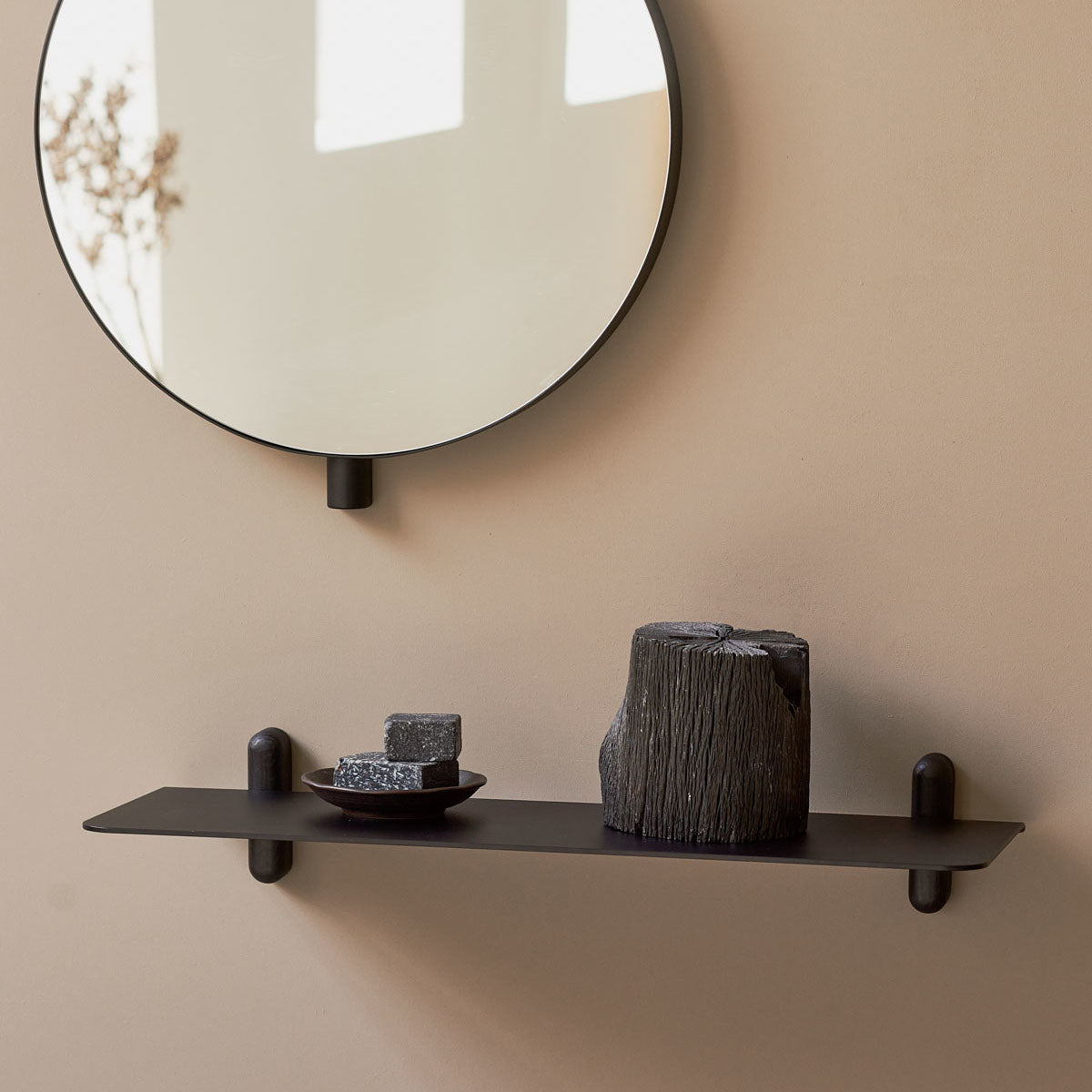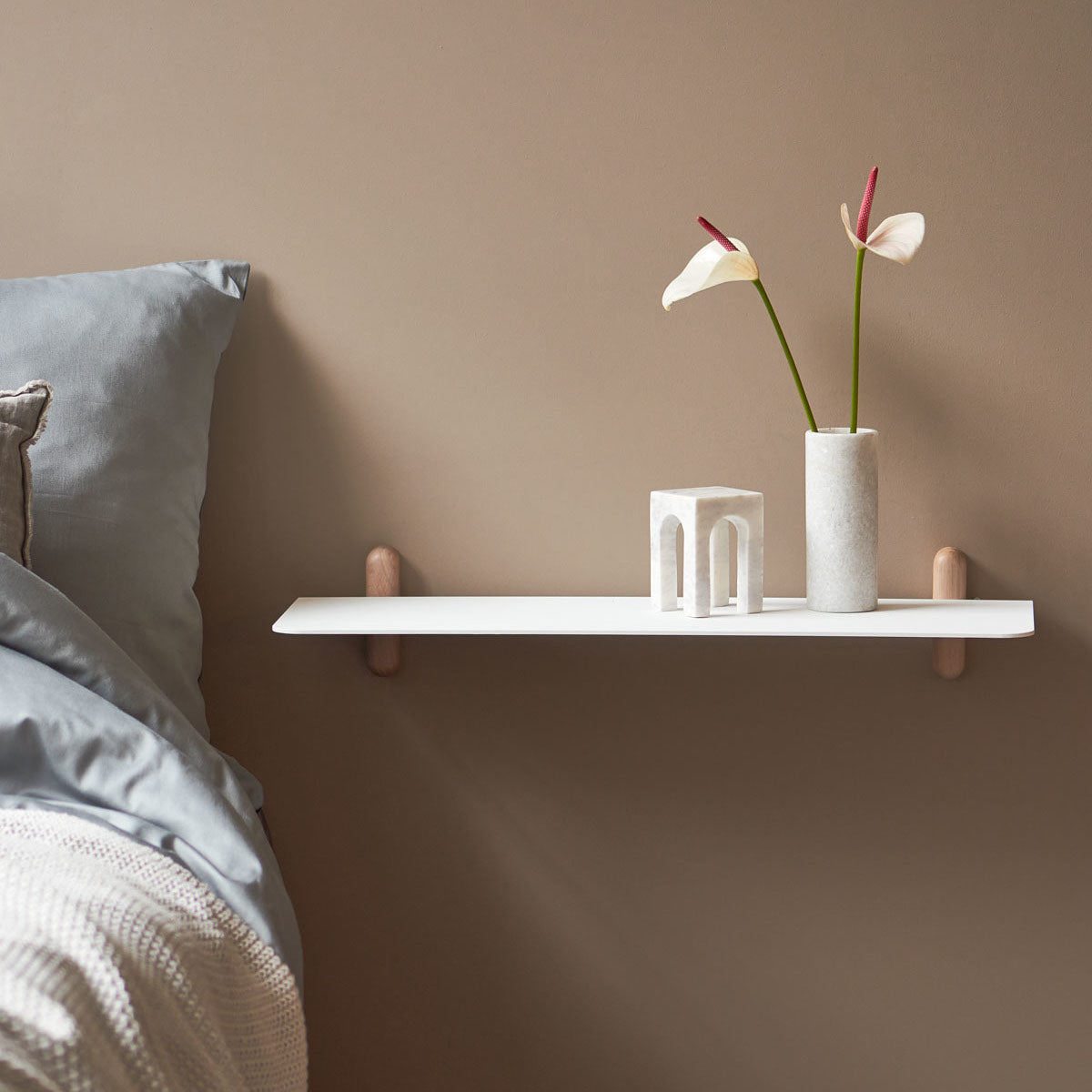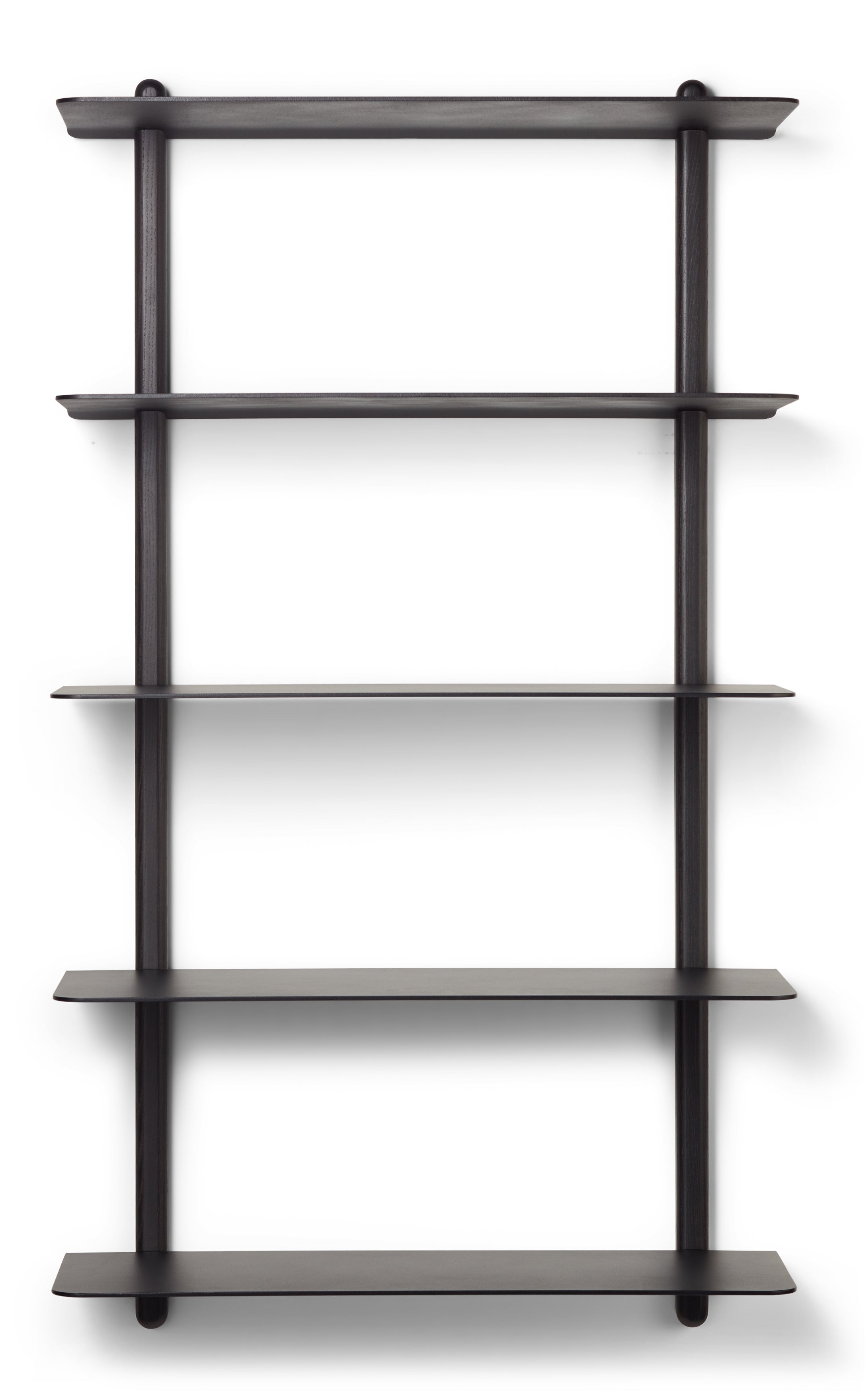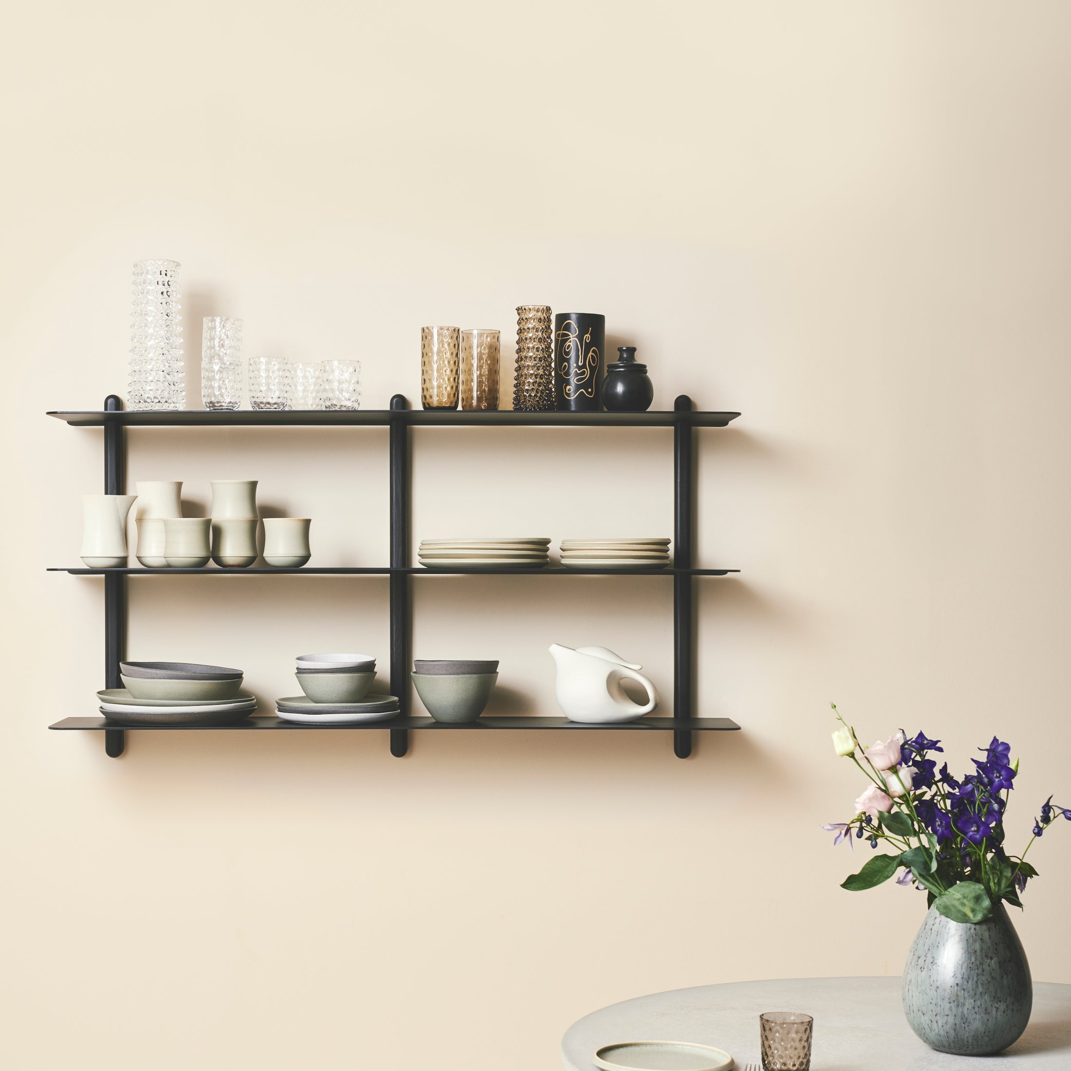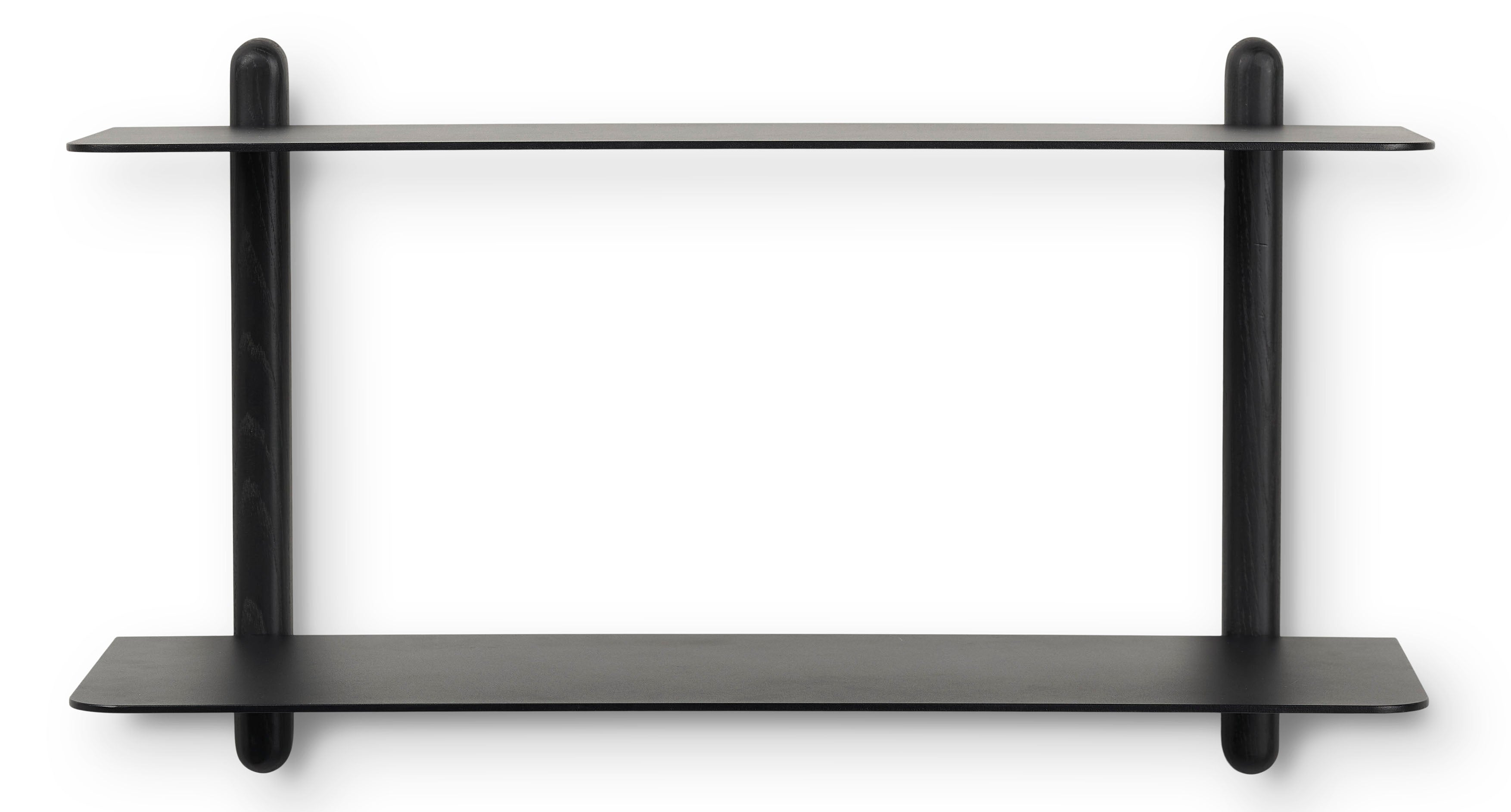 Nivo Large is a minimalistic wall shelf designed by Böttcher & Kayser for Gejst. With no unnecessary details and only clean lines Nivo hangs lightly and elegantly on the wall. Every component has been carefully thought out both in terms of design, form and function. There are no visible screws and the shelves are smoothly plugged in to the wooden poles, that have slits made exactly to fit.