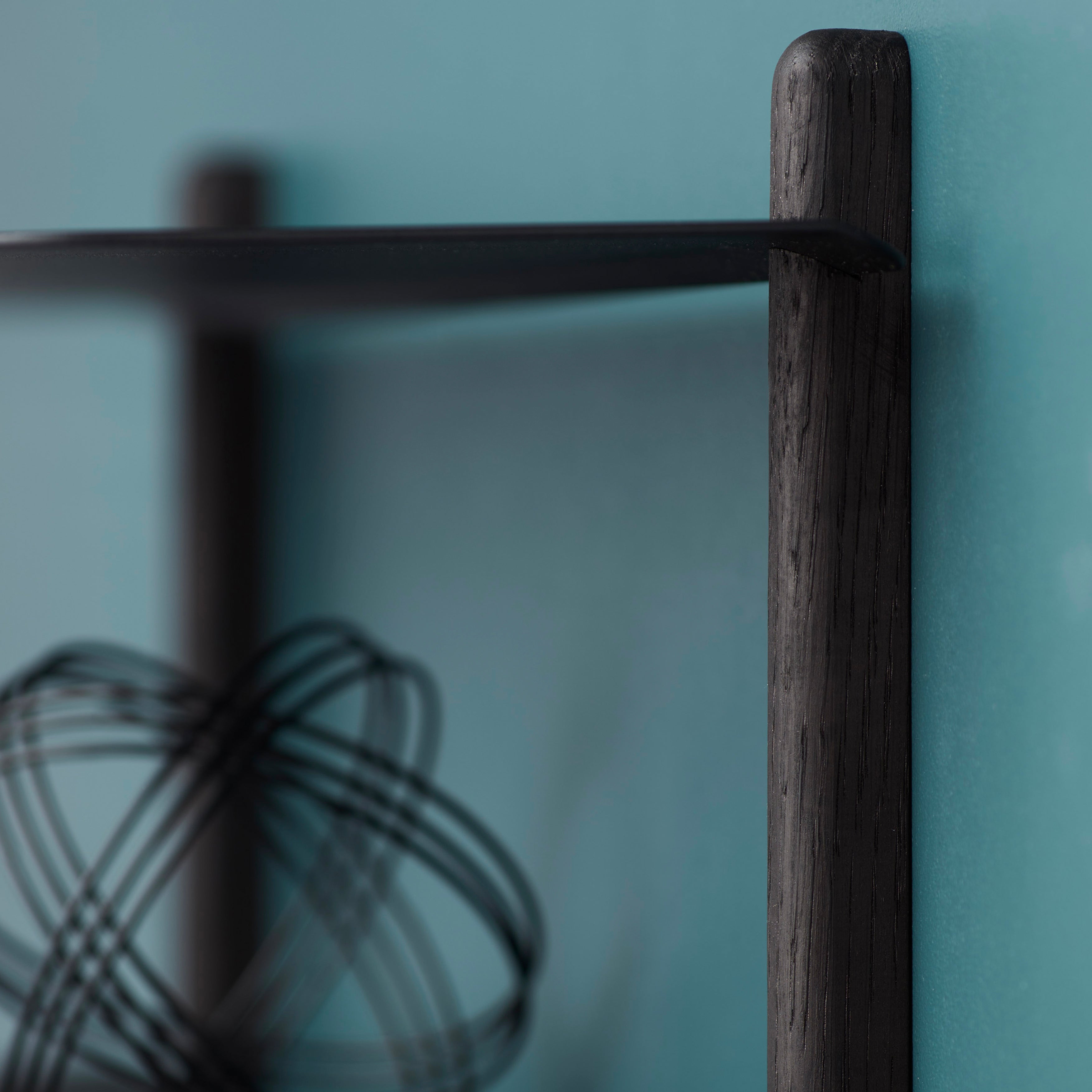 Nivo is a minimalistic wall shelf designed by Böttcher & Kayser for Gejst. With no unnecessary details and only clean lines Nivo hangs lightly and elegantly on the wall. Every component has been carefully thought out both in terms of design, form and function. There are no visible screws and the shelves are smoothly plugged in to the wooden poles, that have slits made exactly to fit.