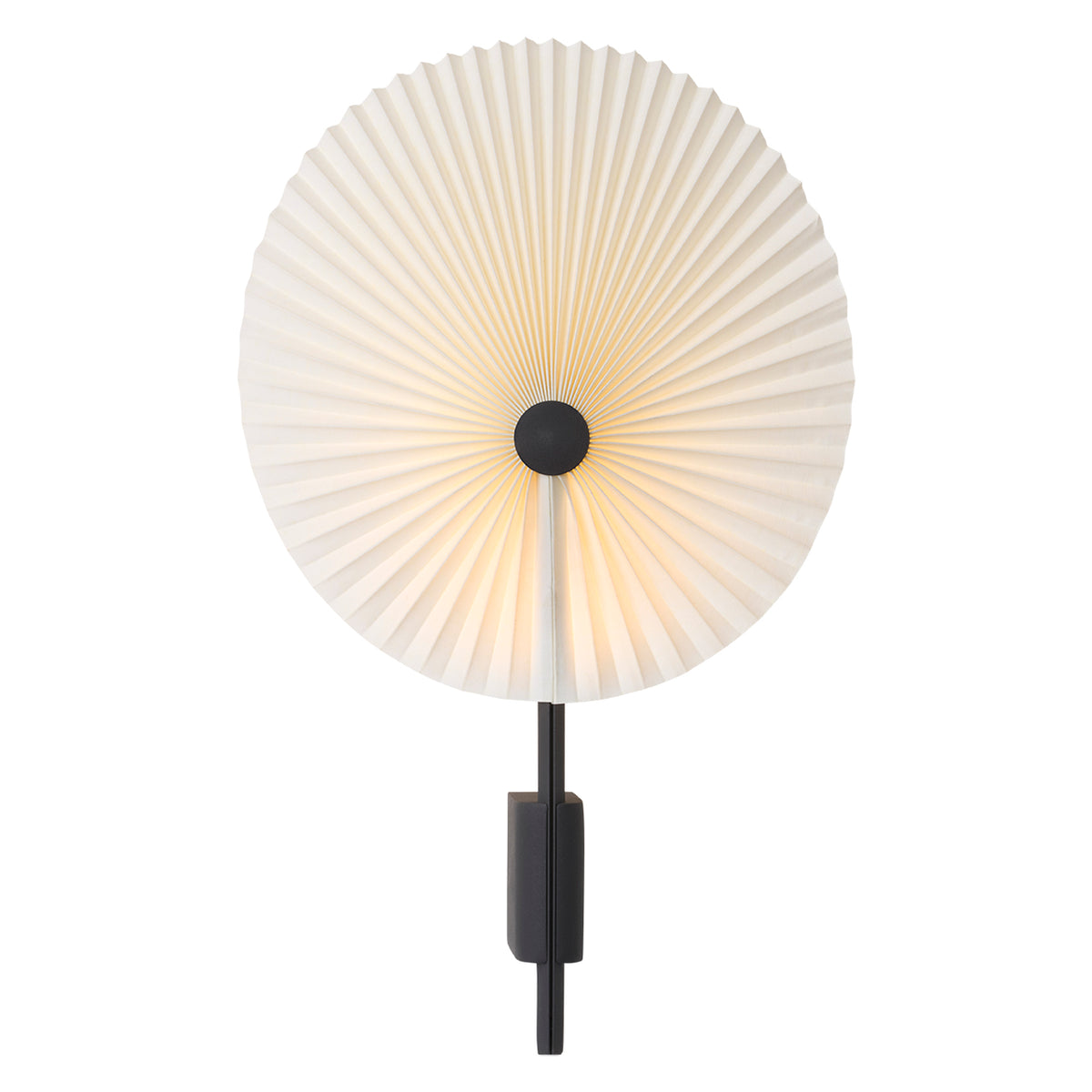 Beginning with a table lamp, the concept evolved into a comprehensive collection featuring pendant, floor, wall, and table lamps. The aim was to blend the playful, handcrafted essence of a fan with a modern industrial foundation. By enhancing light quality through the integration of a small elevated LED light source, they transformed the folded fan into both a lampshade and a reflector. When positioned against a wall, the lamp emits a soft, evenly dispersed ambient glow.
