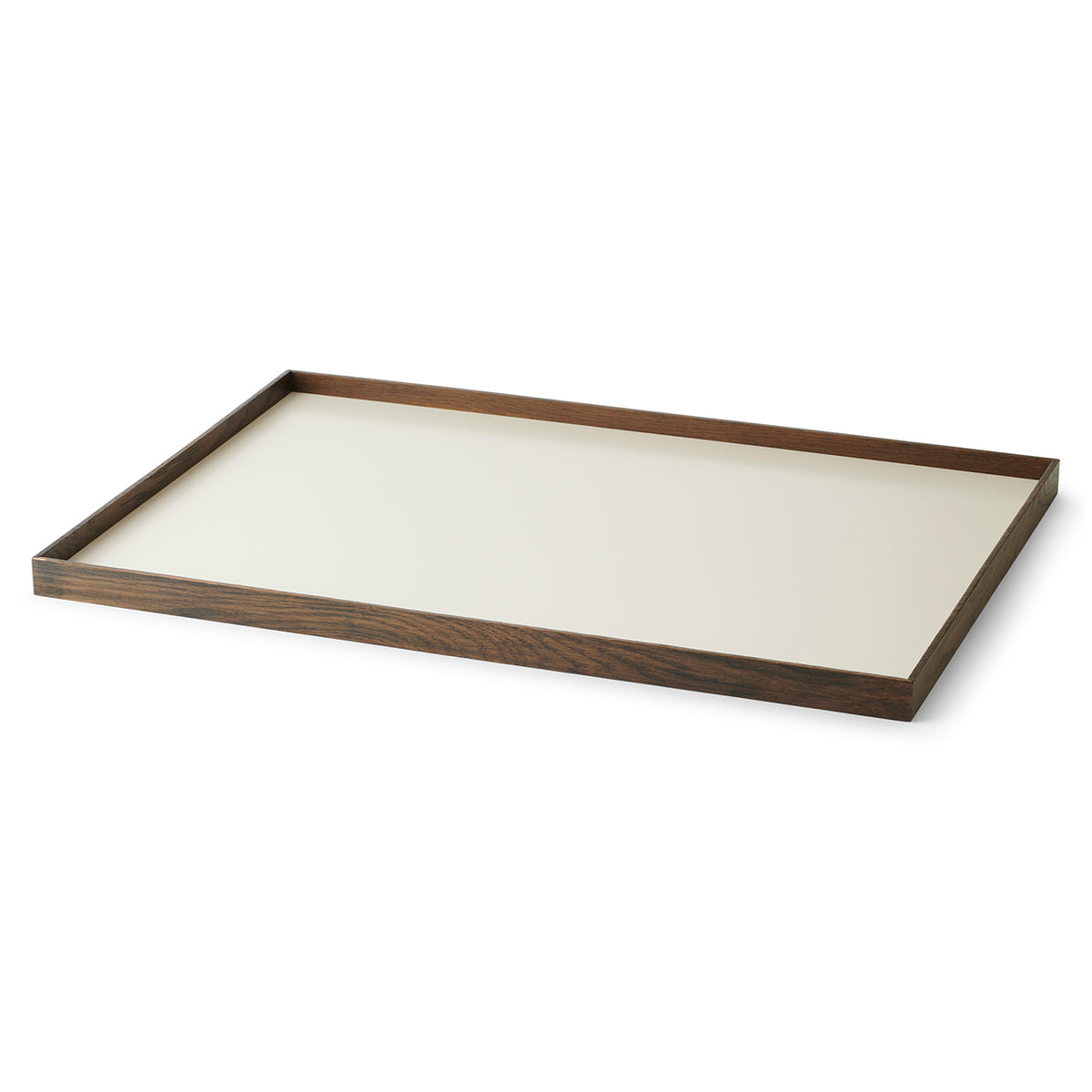 Frame has been relaunched with three new colors, including a beautiful grey, a seductive green, and an elegant beige. To add even more variety, the collection also includes the option to choose between an exclusive oak edge and one in smoked oak. The three different sizes make it possible to choose the ideal Frame for every need, whether for displaying objects or as a practical serving tray.